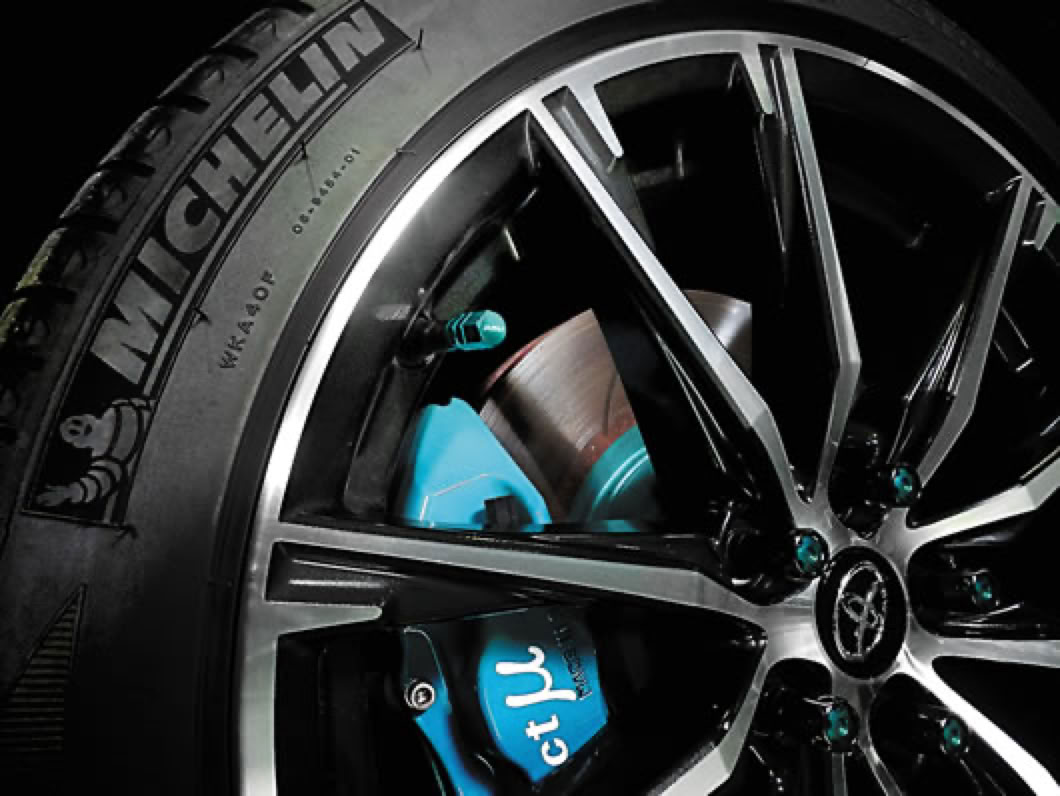 附有“P.MU”徽標的輪圈充氣喉咀蓋,由機械加工的鋁合金製成,並具有亮綠色的氧化鋁塗層,有助增添車身美觀度。